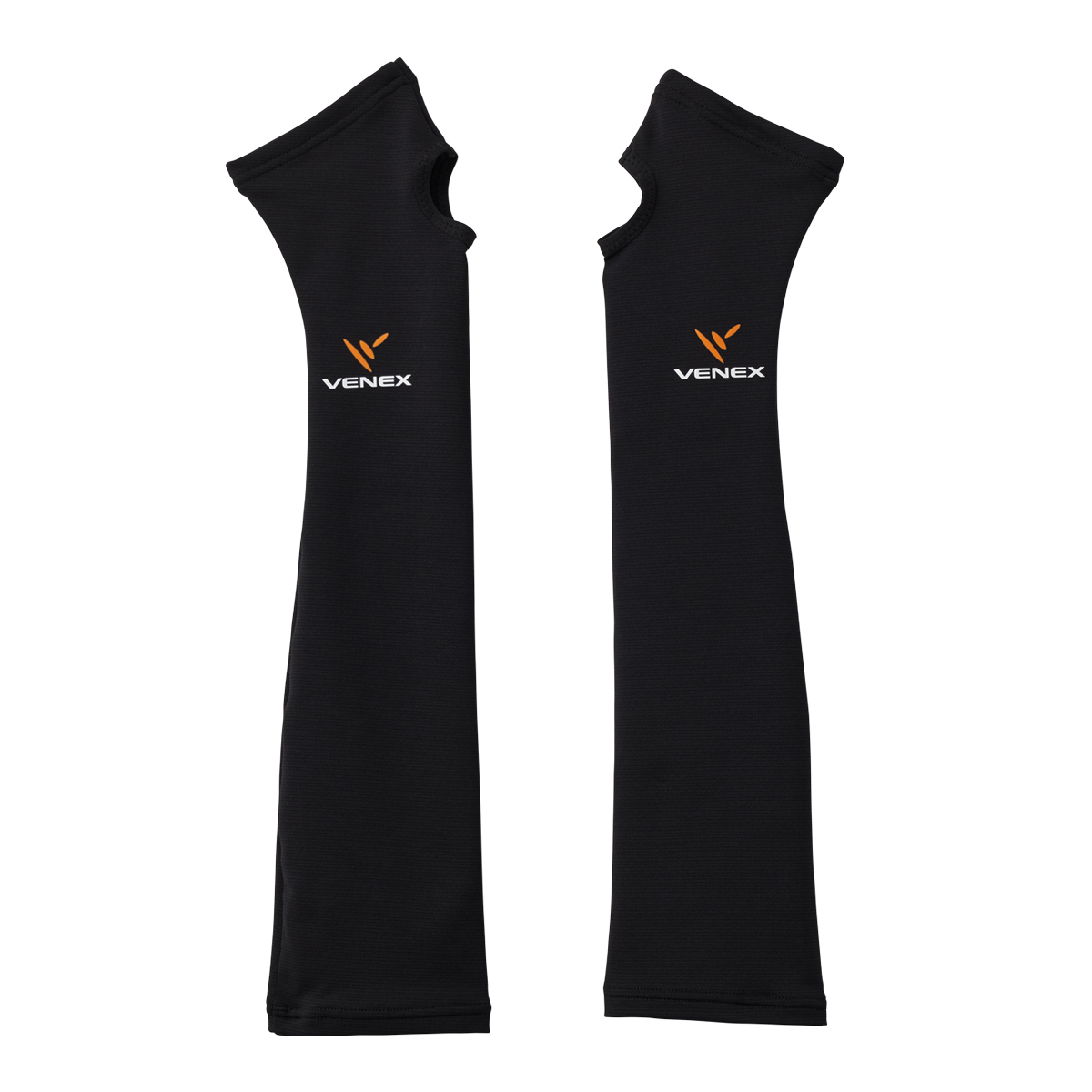 立体的なパターンで腕にソフトフィット。手先から肘までカバーできるロングタイプのアームカバー。